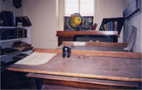 The schoolroom depicts school as it used be. Old school books, high school annuals and pictures are here. |
