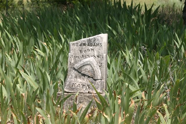 The founding of the cemetery was described in the obituary of Johnson M. Adams: "Coming to Douglas County, Kansas, with an immigrant train in 1870, he later in 1874 moved to Barber County and has resided in or near Sun City ever since. He lost one son, age fourteen years when he had been here but a short time and selected as his final resting place, the top of the hill north of Sun City because it was an inaccessible place and not liable to be disturbed by Indian or buffalo, both of which were numerous here at that time, and this place has been used as a resting place for the dead ever since. Later, another son and his aged mother were buried there and in his last days, Mr. Adams expressed the wish that when the end came, to be laid beside his mother."