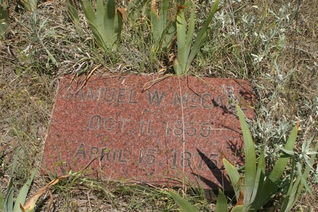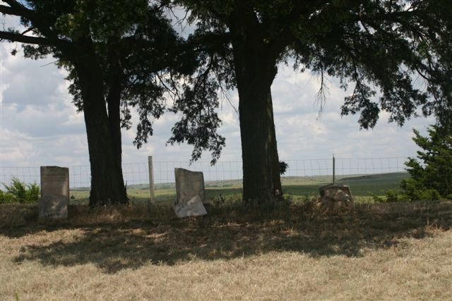 This old cemetery is north of Sun City, SWSW 36-30-15, Fred Hoagland, land owner as of 2004. Oldest marked grave still visible is Harris Adams (April 13, 1862 - April 20, 1873), son of Rev. and Mrs. Adams, Sun City's first preacher. Three graves are marked April 20, 1883, the deaths resulting from a cyclone. Identities are Mrs. S.M. Shumate (February 16, 1832); her son David (January 3, 1864); B.B. Allen (April 16, 1842).
