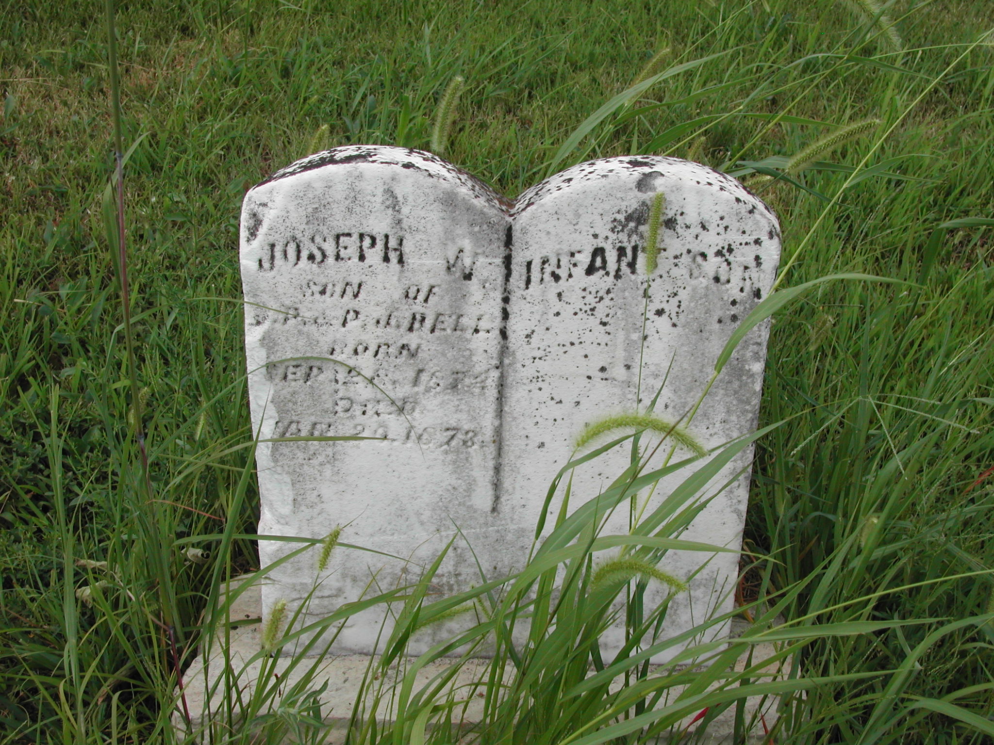 Bell, Joseph W; b. 28 Sep 1872; d. 20 Mar 1873; Son of ? O and O L Bell; s/w Infant Son Bell ; - Veteran status N/A; Photo