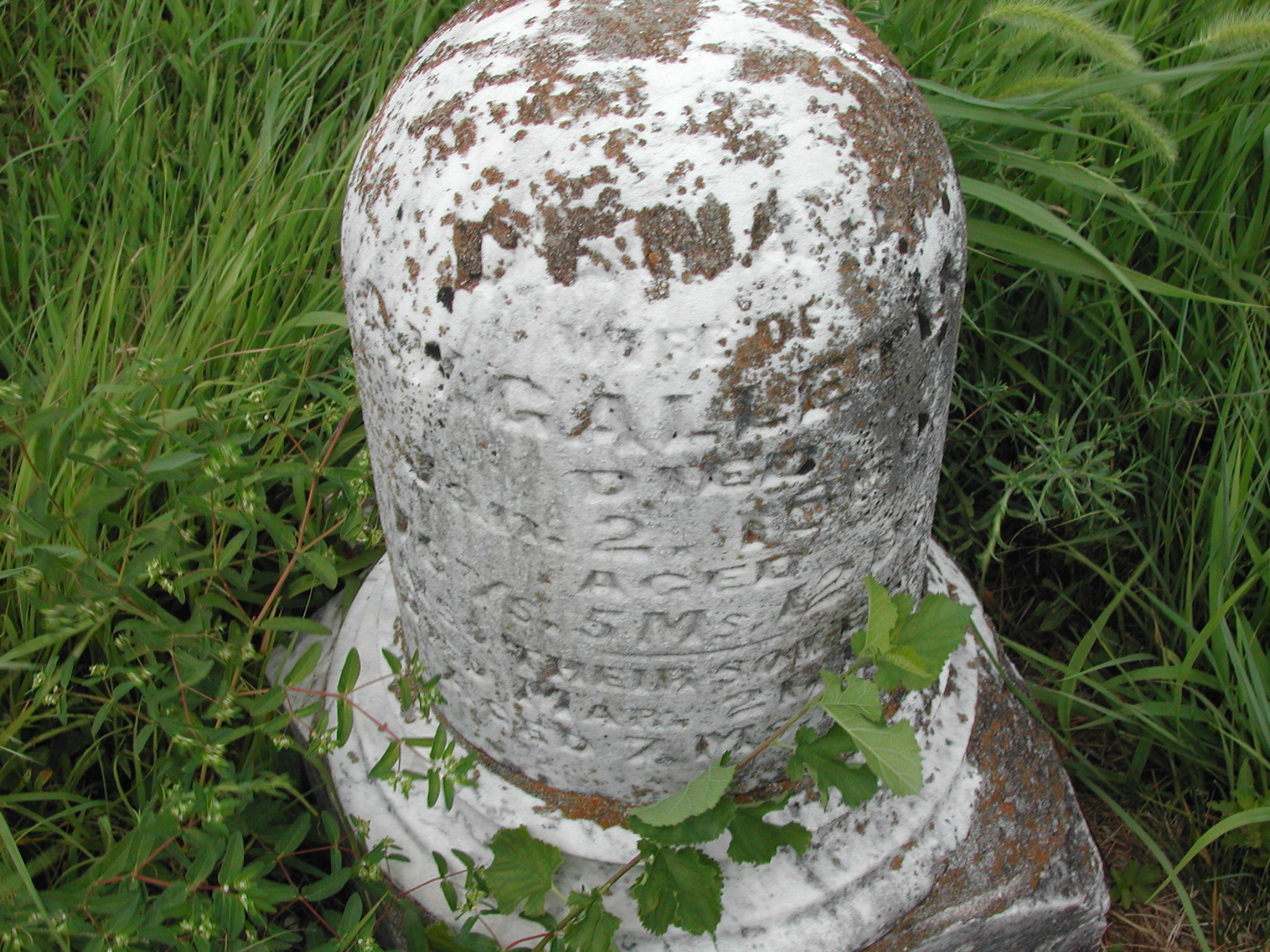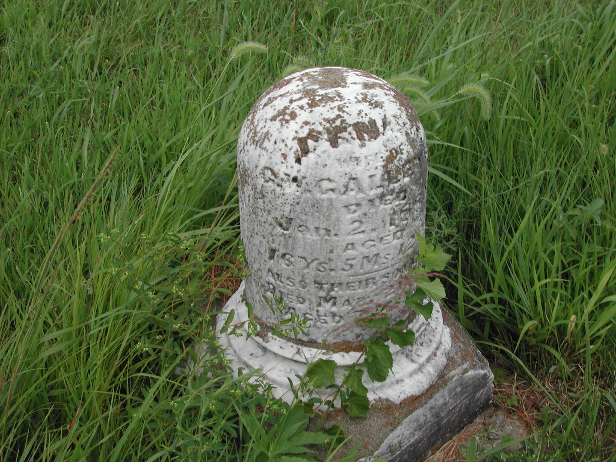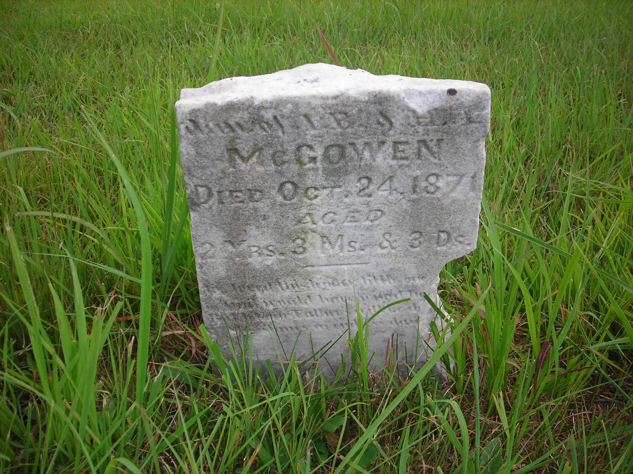 McGowen, ??; d. 24 Oct 1871; a. 02 Yrs, 03 Mos, 03 Dys; Dau of L B and H ? McGowen; Broken; - Veteran status N/A; Photo