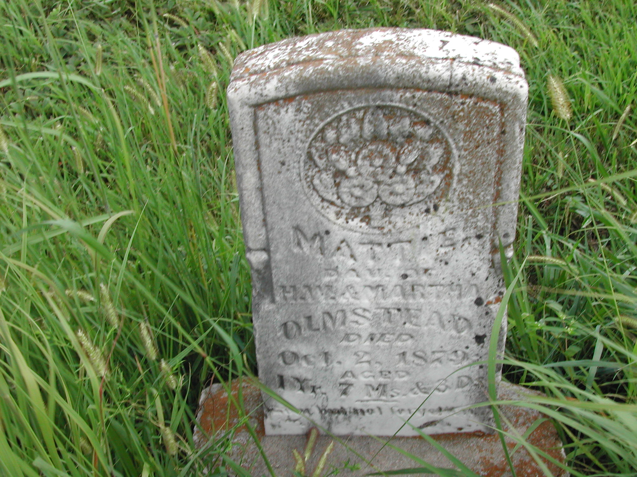 Olmstead, Mattie; d. 02 Oct 1879; a. 01 Yrs, 07 Mos, 08 Dys; Dau of H W and Martha Olmstead; - Veteran status N/A; Photo