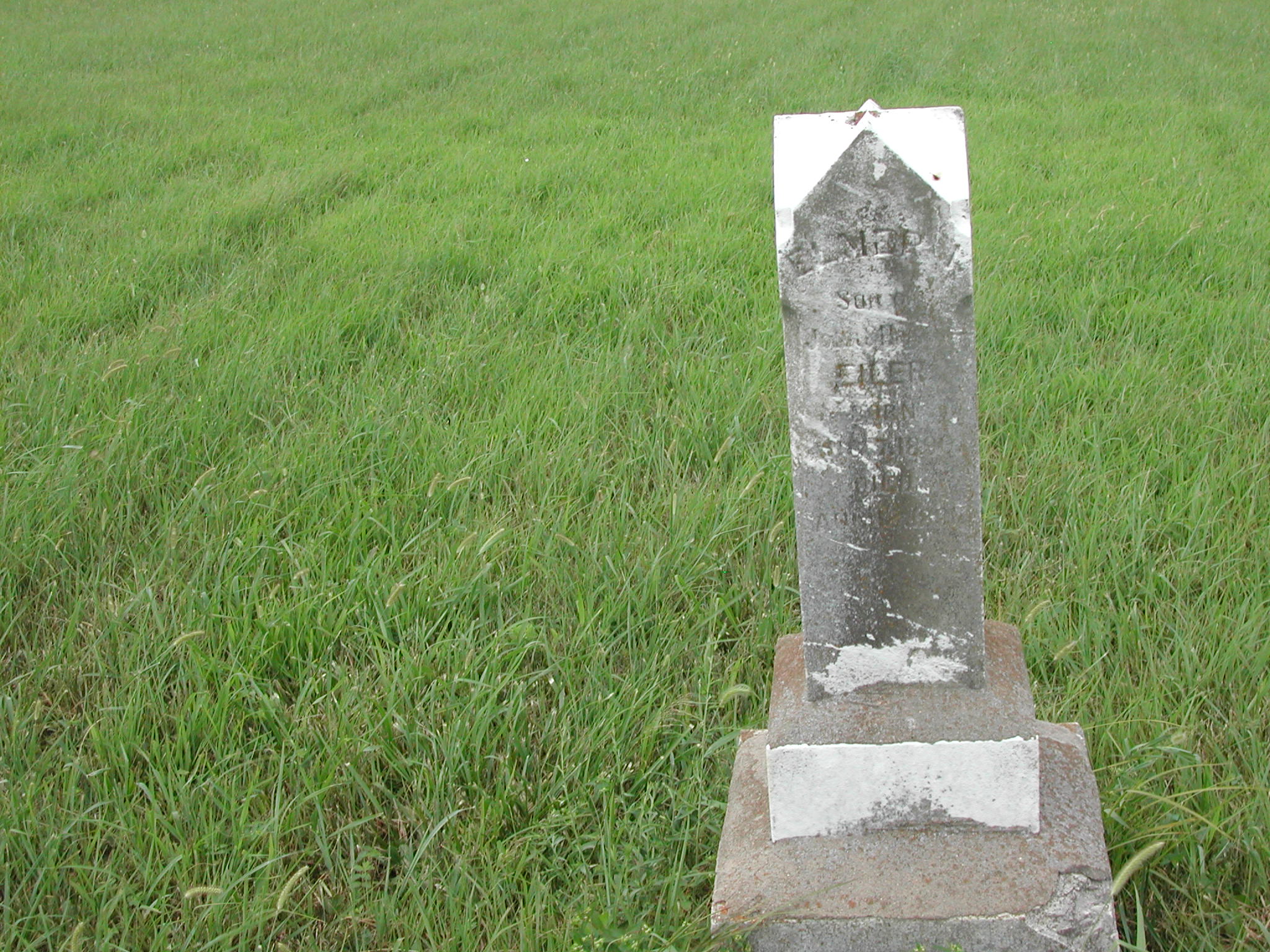 Eiler, Elmer; b. 07 Aug 1890; d. 12 Aug 1890; Son of John and Hannah Eiler; Eiler monument; - Veteran status N/A; Photo