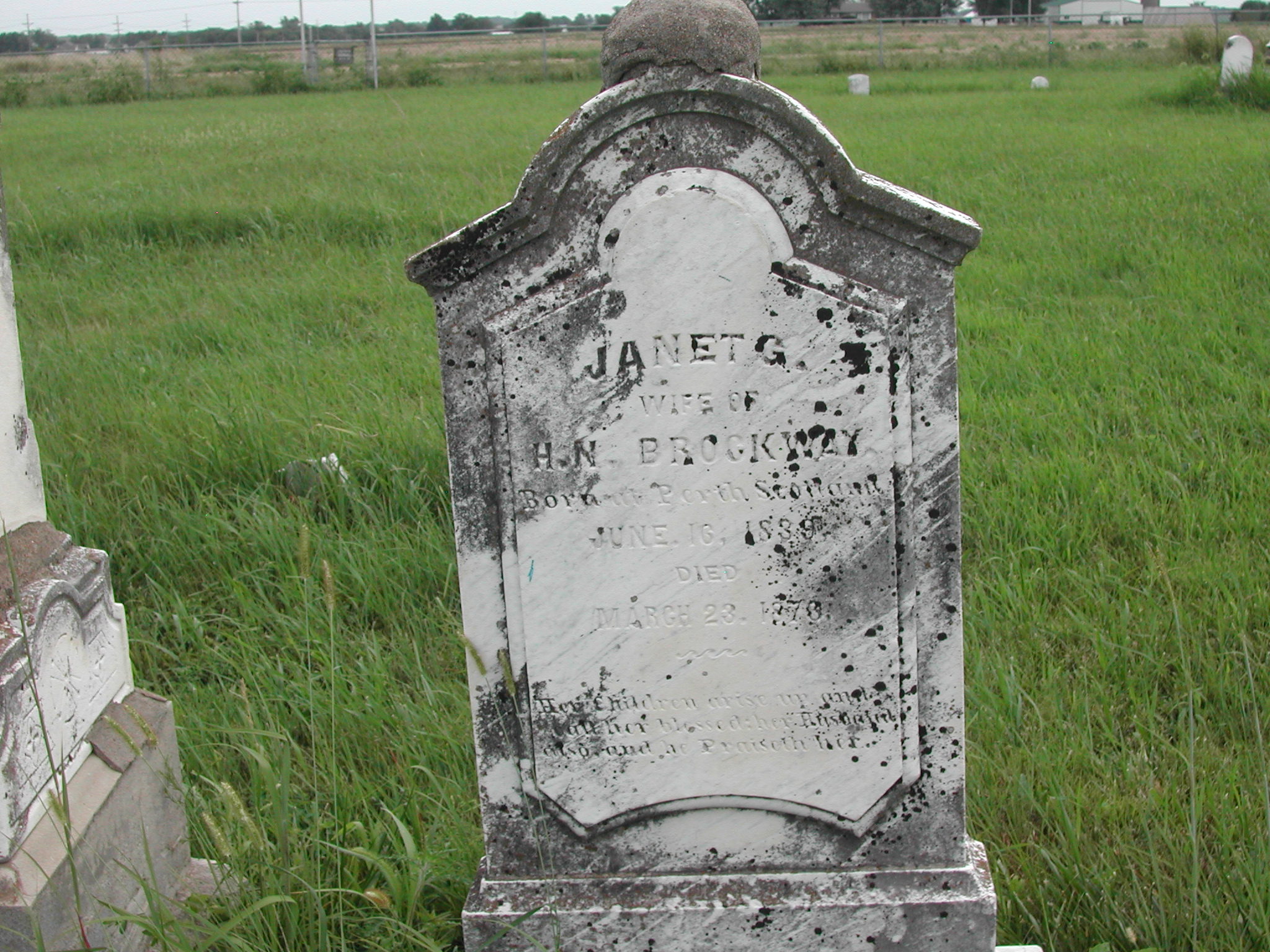 Brockway, Janet G; b. 16 Jun 1839, Perth, Scotland; d. 23 Mar 1870; Wife of H N Brockway; - Veteran status N/A; Photo Photo