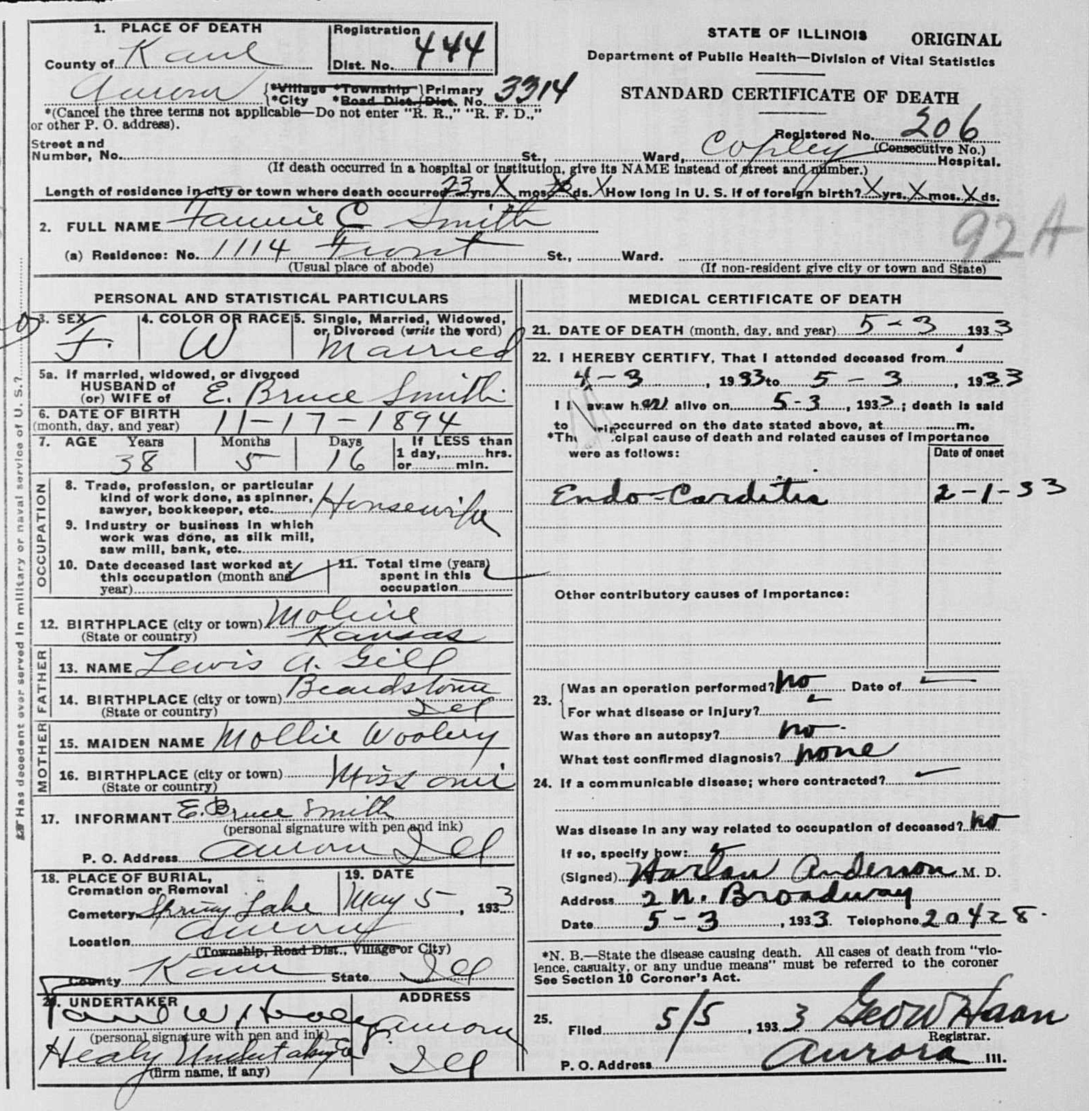 Lewis died 1933. Some of their