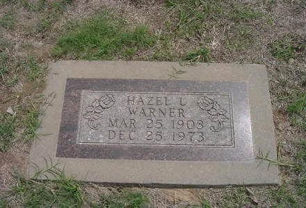 | Warner, Hazel Lolita | 3-25-1903 | 12-25-1973 | 1 | 57 | EGAR | Age 70 |