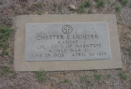 | Lighter, Chester Ellis | 6-28-1908 | 4-30-1969 | 5 | 97 | EGAR | KS Cpl Co D 137 Inf WWII |