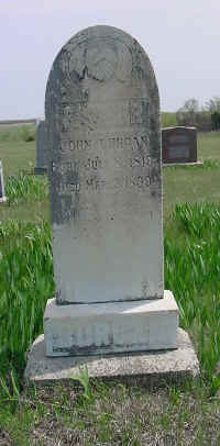 There is one unmarked grave which contains a half breed Indian scout for the Calvary. My great grandfather Charles A. Jones buried this man on that hill before there ever was a cemetery there. This was about in 1890-1895.This scout was riding down that hill towards the old Jones farm across the road from that (now) cemetery, behind him was Indians shooting at him. My great grandfather shot at the Indian's and tried to save the scout. He failed...however...that scout died right across the road from the cemetery in my great grandfather's arm's. Charles A. Jones buried the scout up on the hill, put a stone there and that's when the Pleasant Valley Cemetery began. (Submitted by Rev. Sarina S. Schellhamer Harper)