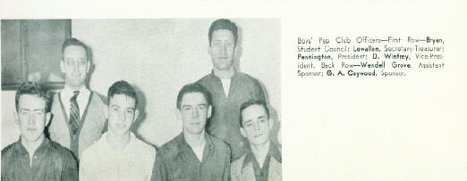 First Row - Bryan, Student Council; Lewallen, Secretary-Treasurer; Pennington, President; D. Winfrey, Vice-President. Back Row - Wendell Grove, Assistant Sponsor; G. A. Caywood, Sponsor.