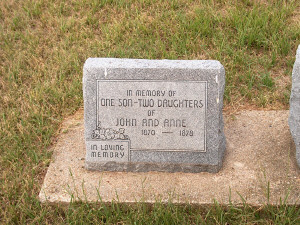 | Aaboe | One son, two daughters | 1870 | 1878 | In memory of one son - two daughters of John and Anne | View |