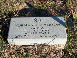 | Severson | Norman J. | 7 Nov 1891 | 11 Dec 1963 | Kansas PVT US Army WWI | View | |