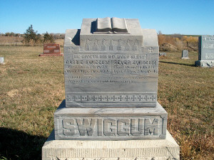| Swiggum | Sever | 31 Mar 1899 | 47 yr, 2mo, 18ds | s/w Carrie He giveth his beloved sleep. I shall know the loved who have gone before, and joyfully sweet will the meeting be. | View | |