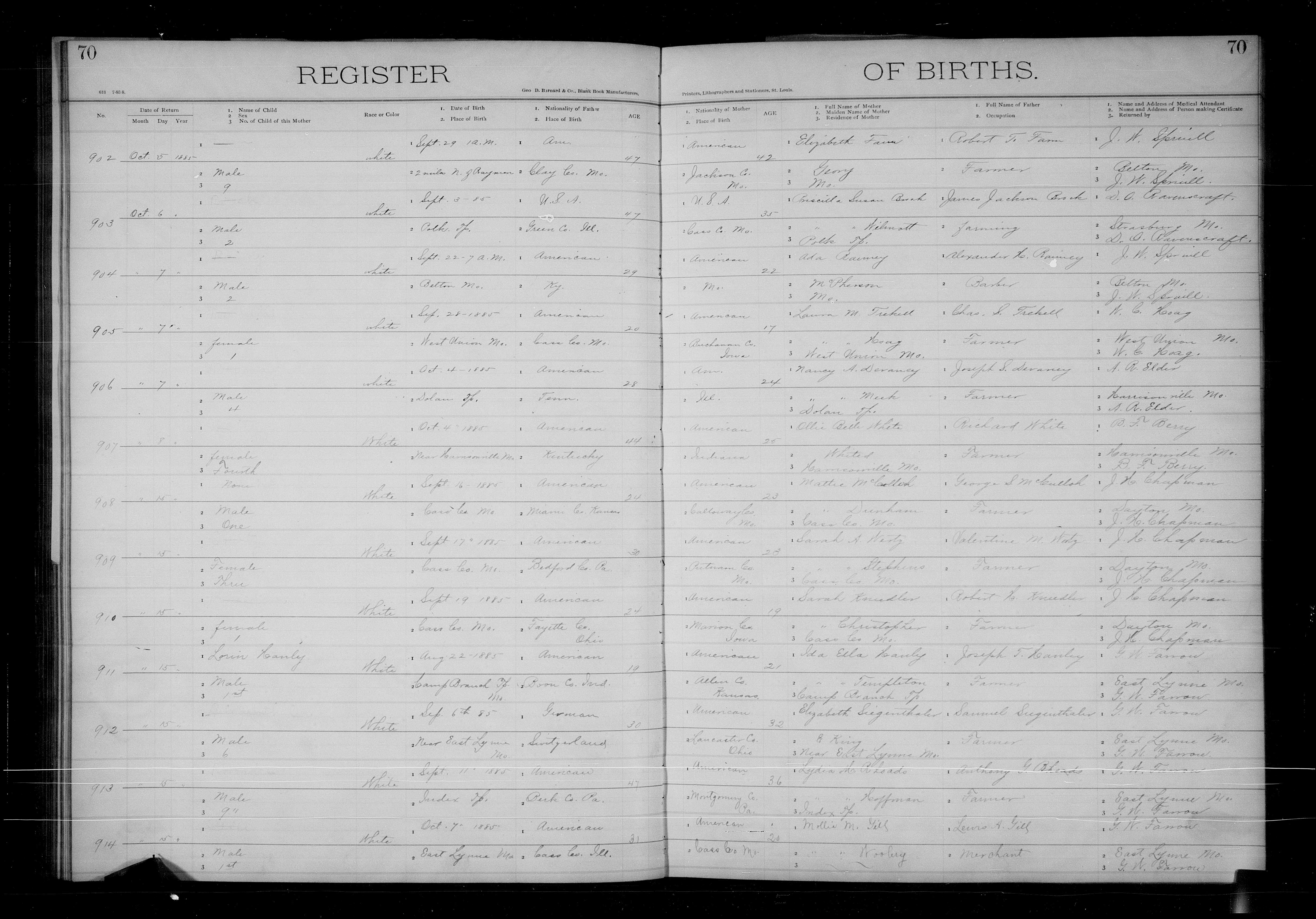 10 Dec 1884 in Jackson, Cape Girardeau County, Missouri,