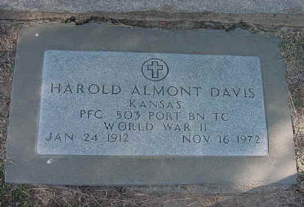 | Davis, Harold Almont | 1-24-1912 | 11-16-1972 | 3 | 70 | EGAR | Age 60, KS Pfc 503 Port Bn Tc WWII |