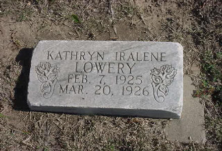 | Lowery, Kathryn Iralene | 2-7-1925 | 3-20-1926 | 5 | 18 | EGAR | |