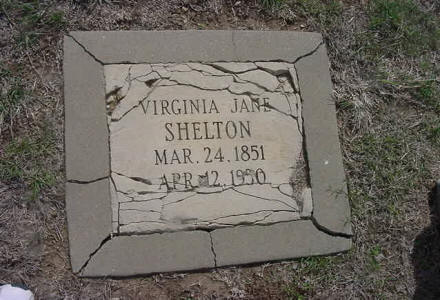 | Shelton, Virginia Jane | 3-24-1851 | 4-12-1930 | 2 | 25 | 4 | |