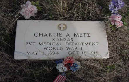 | Metz, Charlie A. | 5-11-1894 | 10-16-1918 | KS Pvt Med Dept WWI |