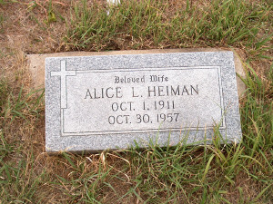 | Heiman | Alice L. | Oct. 1, 1911 | Oct. 30, 1957 | Beloved wife. | View |