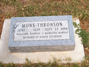| Thronson | Mons | June 1829 | Sept. 22, 1884 | Haaland, Norway - Mankato, KS Husband of Karen Severson | View |