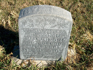 | Strom | Ole A. | 4 Nov 1881 | 26 Feb 1898 | Missed on earth but crowned in heaven. In my Fathers house are many mansions. | s/o O.L. & Anna Strom View |